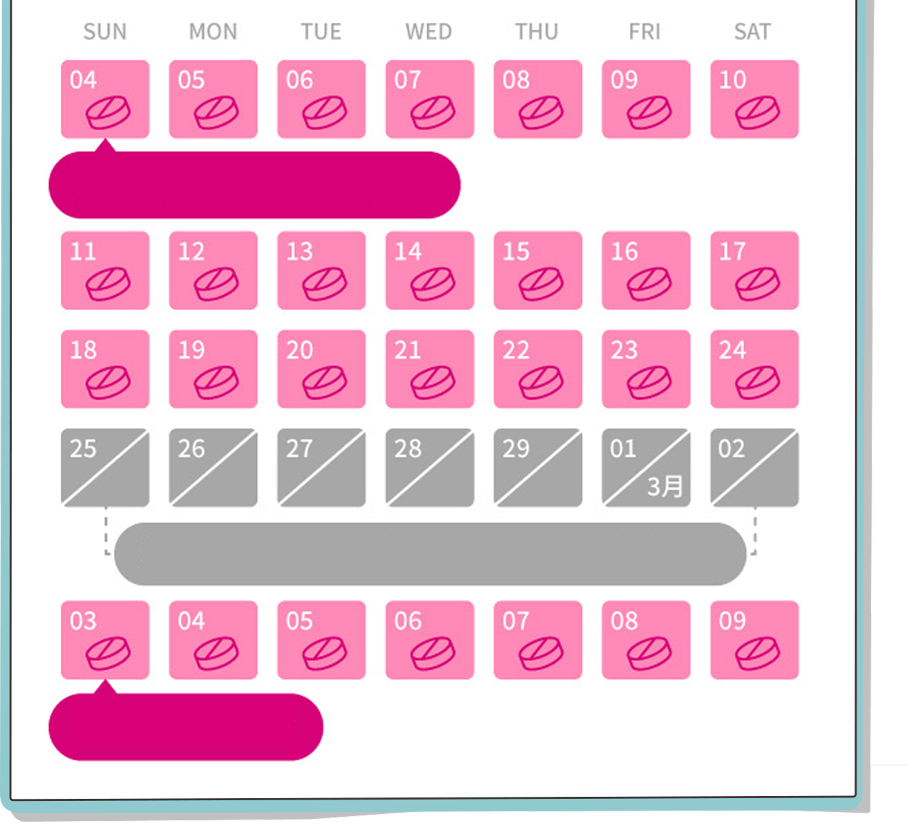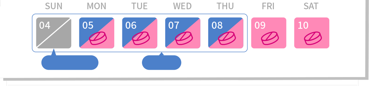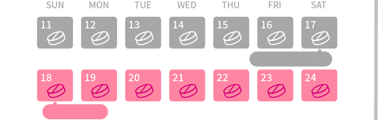 月經週期第1天,開始服藥1