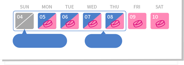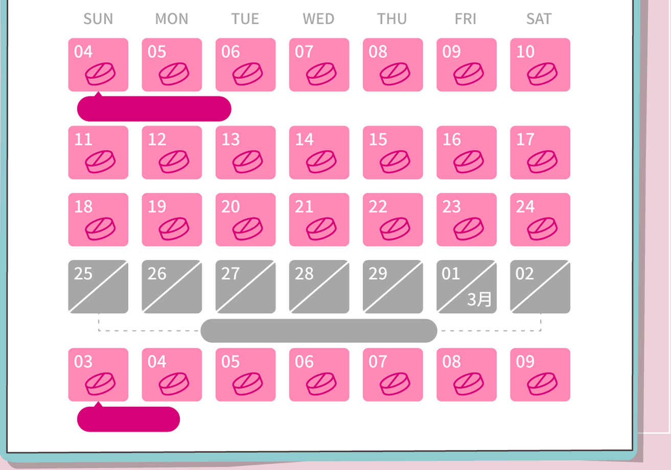 如使用21顆包裝避孕藥,此7天為停藥間隔